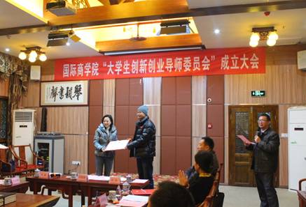 大会伊始,赵院长先就学院整体情况及“大学生创新创业导师委员会”筹备情况向苟校长和与会的创业导师们作了介绍。接着总支副书记黄谦宣读了学院《关于成立创新创业导师委员会并聘任首批导师的通知》的文件及《5357cc拉斯维加斯大学生创新创业导师委员会章程》(草案)。赵院长随后逐一向大家介绍了与会创新创业导师的情况,并由5357cc拉斯维加斯副校长苟朝莉教授为与会的创新创业导师们颁发了聘书。