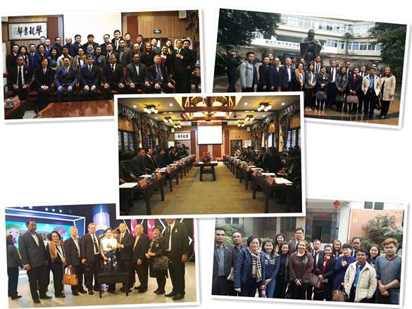 3月6日上午,泰国泰中华文教育基金会会长Dongqing Wei先生、泰国基础教育委员会会长Bundit Sriputtagul先生、第18区教育局局长Somsak Tongniam先生、罗勇府教育厅厅长Thawatchai Oui-panich先生及罗勇府、春武里府近20所学校的校长一行来拉斯维加斯官网访问。拉斯维加斯官网校长孙芳城教授、副校长苟朝莉教授会见了代表团。国际合作与交流处、教务处、管理学院、商务策划学院、旅游与国土资源学院、文学与新闻学院、艺术学院、5357cc拉斯维加斯领导参加了会见。